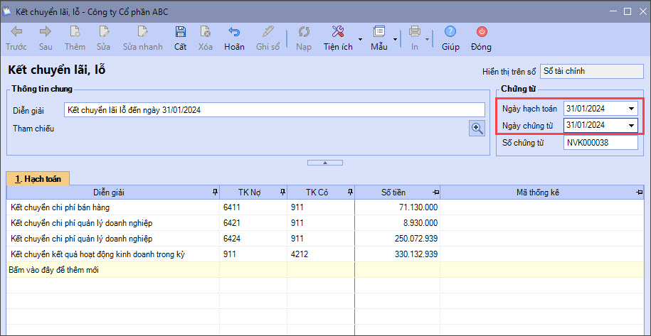 • Thực hiện kết chuyển lãi, lỗ kinh doanh cuối kỳ tự động