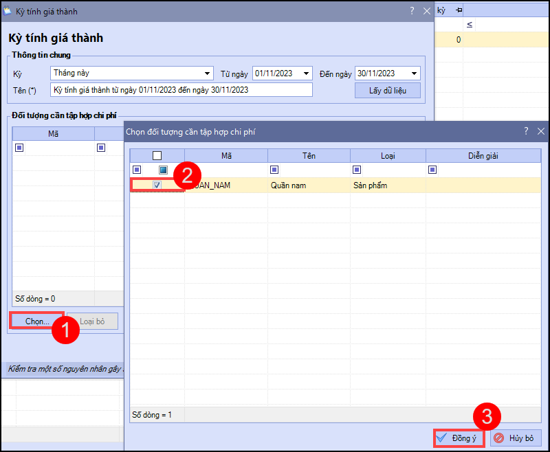 Nguyên nhân 2: Do đối tượng THCP bạn cần tính giá thành đã được chọn trong kỳ tính giá thành khác có thời gian giao nhau với kỳ tính giá thành hiện tại