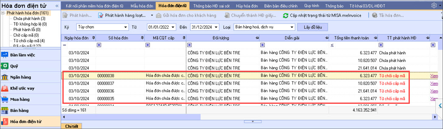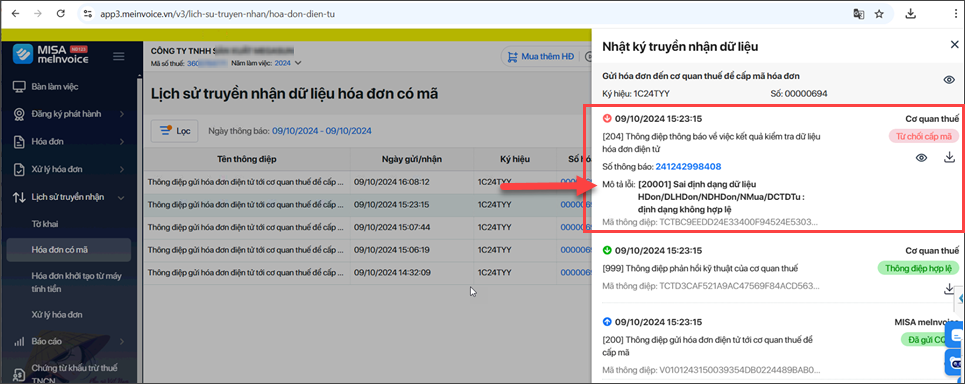 2.1 Cách xử lý lỗiĐối với hóa đơn bị Cơ quan thuế từ chối cấp mã thì hóa đơn là hóa đơn chưa hợp lệ, người dùng cần thực hiện: