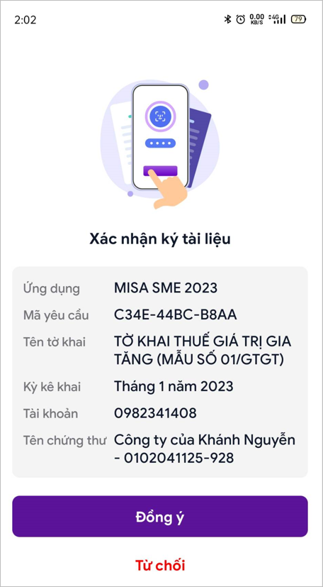 Lưu ý: Các bước tiếp theo được thực hiện trên ứng dụng MISA eSign di động. Xem hướng dẫn tải và cài đặt ứng dụng Tại đây
