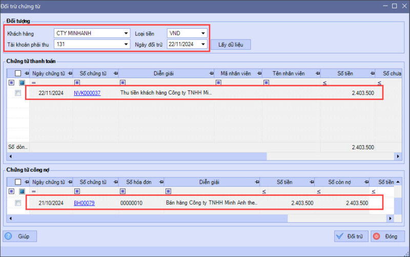 - Bước 3: Thực hiện Đối trừ chứng từ theo hướng dẫn tại đây.