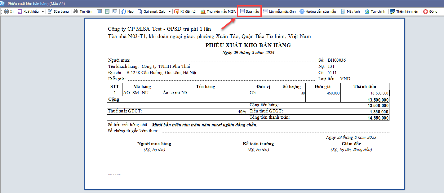2.1 Trên máy tính đã có mẫuBước 1: Mở mẫu mà bạn cần chuyển sang máy khác lên \ nhấn nút Sửa mẫu
