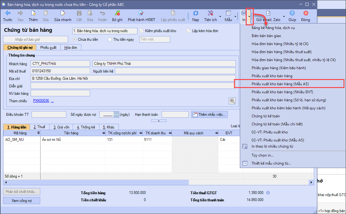 Bước 5: Mở phần mềm, in đúng tên mẫu này để kiểm tra lại. Lưu ý: Nếu không biết tên của mẫu đã chuyển sang để in thì: