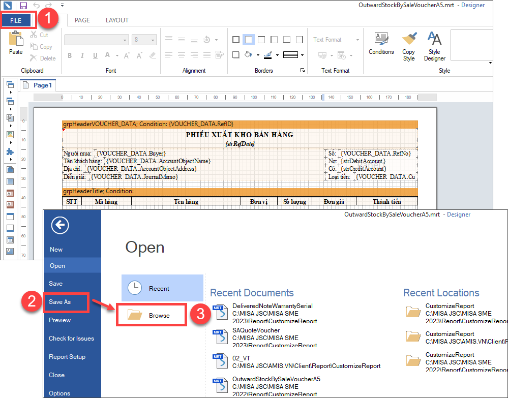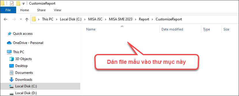Bước 4: Chọn thư mục CustomizeReport và dán file mẫu vừa tải về vào