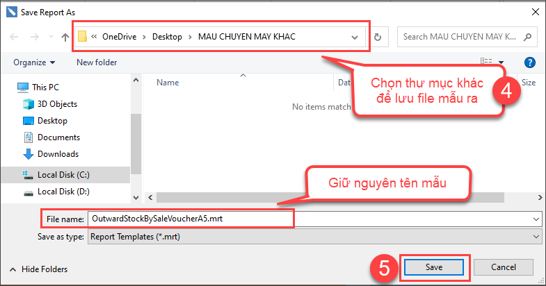 Bước 3: Chọn thư mục khác để lưu file mẫu ra \ Giữ nguyên tên mẫu ở File name\ nhấn Save