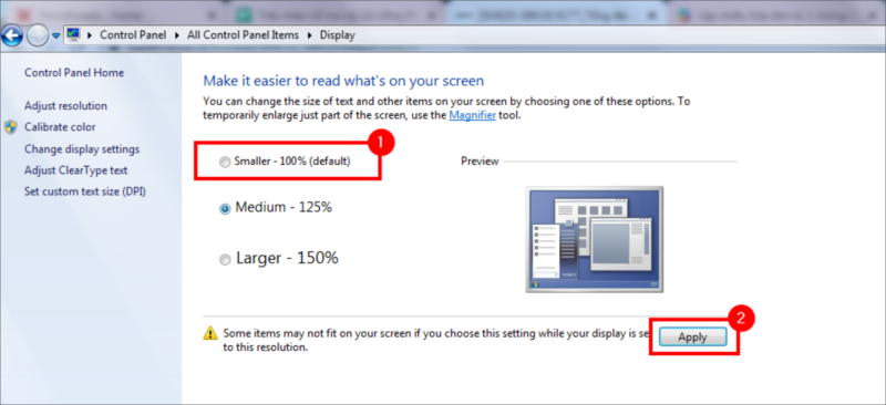 - Hướng dẫn thay đổi tỷ lệ hiển thị màn hình trên Windows 7.