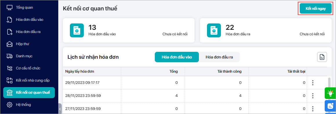 Bước 2: Vào mục Kết nối cơ quan thuế, nhấn Kết nối ngay.