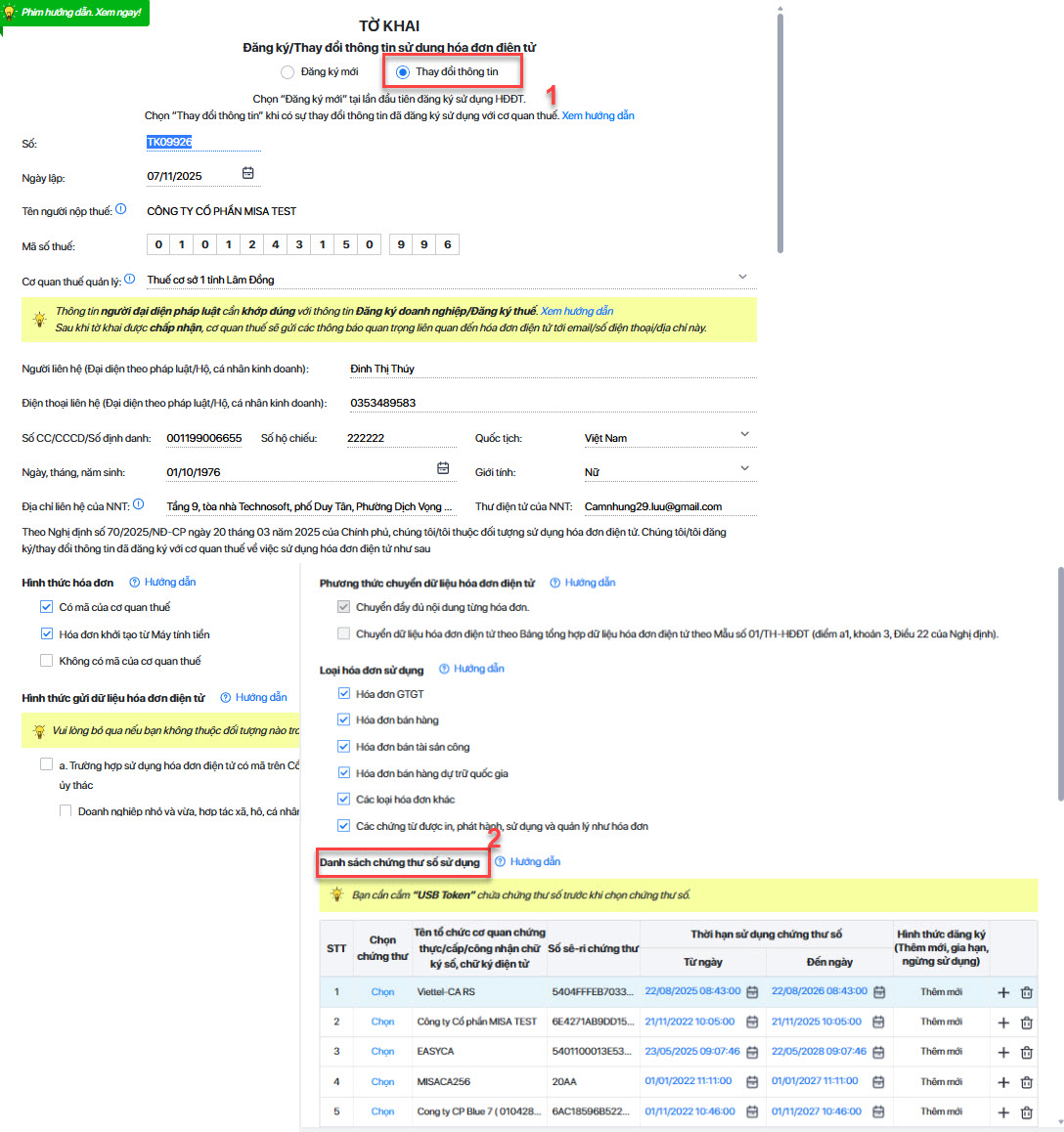 - Hướng dẫn lập tờ khai thay đổi thông tin chứng thư số khi phát sinh thay đổi hoặc gia hạn