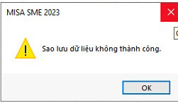 Biểu hiện: Phần mềm cảnh báo “Sao lưu dữ liệu không thành công”