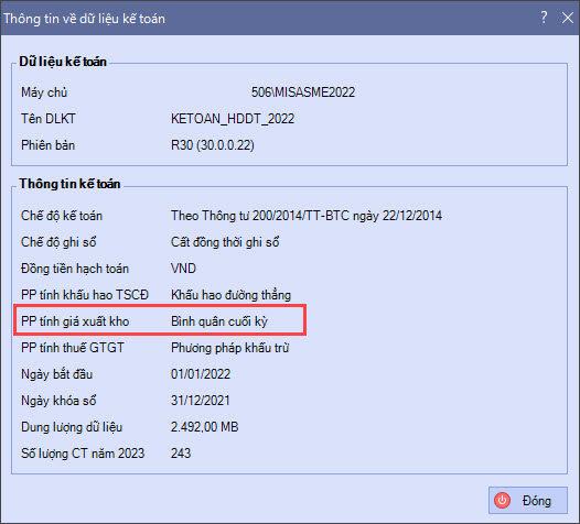 - Kiểm tra Phương pháp tính giá xuất kho đang áp dụng trên dữ liệu kế toán: