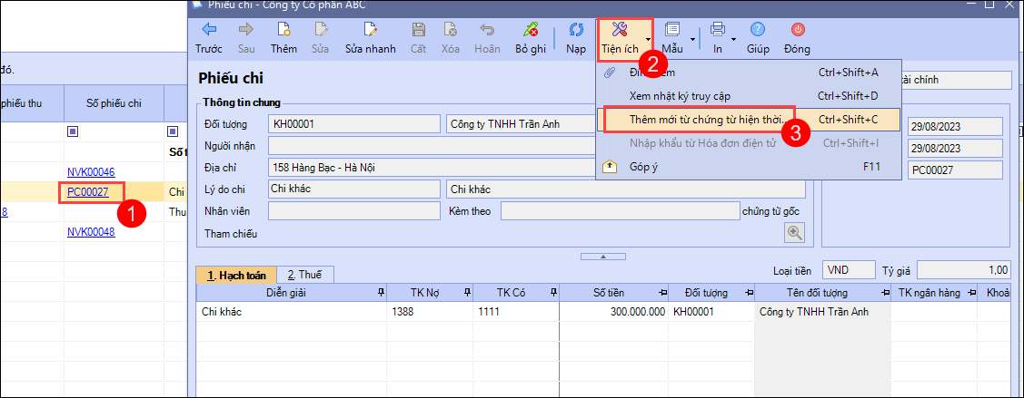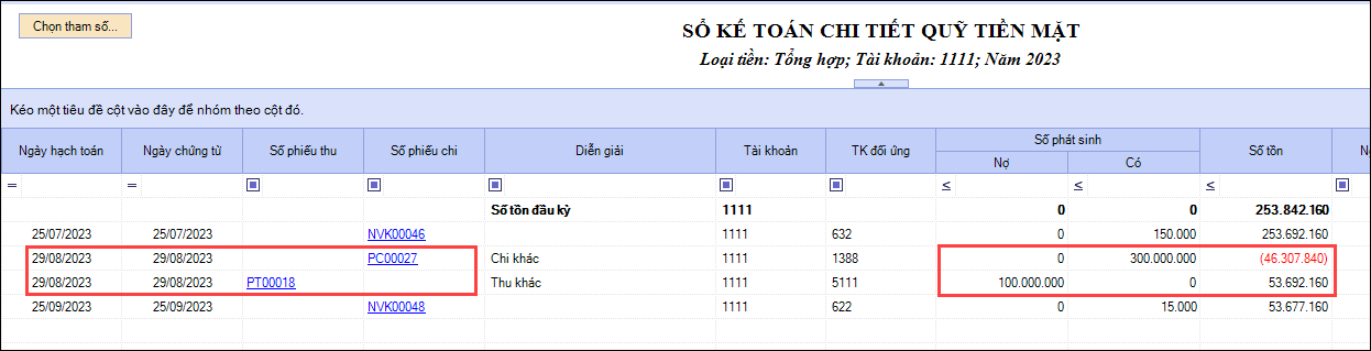 Nếu trong cùng ngày chứng từ chi trước chứng từ thu (Báo cáo âm)\ nhân bản chứng từ chi (thay đổi thứ tự lập)\ xóa chứng từ chi cũ.