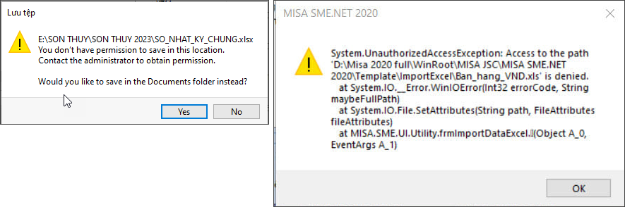 Trường hợp 1: System.UnauthorizedAccessException: Access to the path...