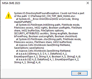 Nguyên nhân: Do cấu hình Phần mềm diệt Virus chặn không cho xuất khẩu Excel. Giải pháp: Thực hiện theo hướng dẫn Tại đây Trường hợp 2: System.IO.DirectoryNotFoundException: Could not find a part of the path...