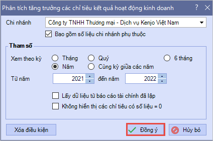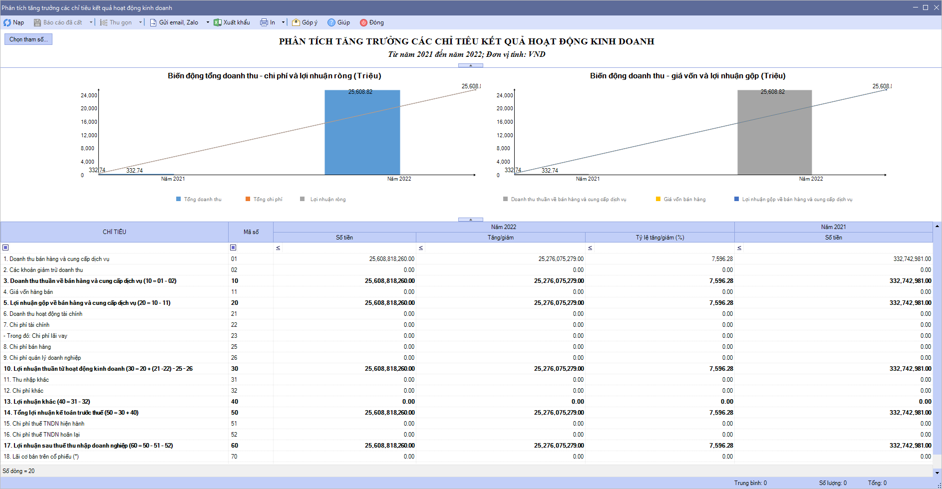 Ví dụ: Phân tích tăng trưởng các chỉ tiêu kết quả hoạt động kinh doanh.