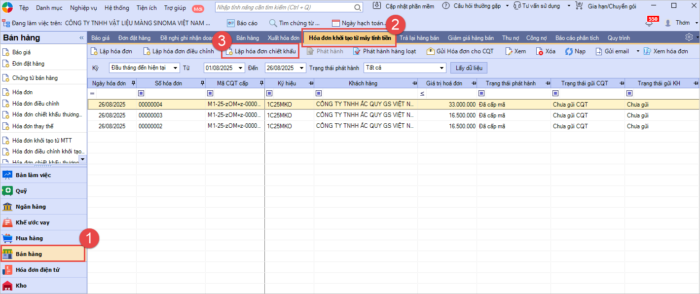 Việc lập hóa đơn chiết khấu thương mại trên phần mềm MISA SME được thực hiện như sau: