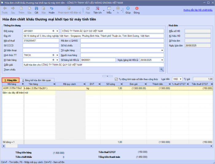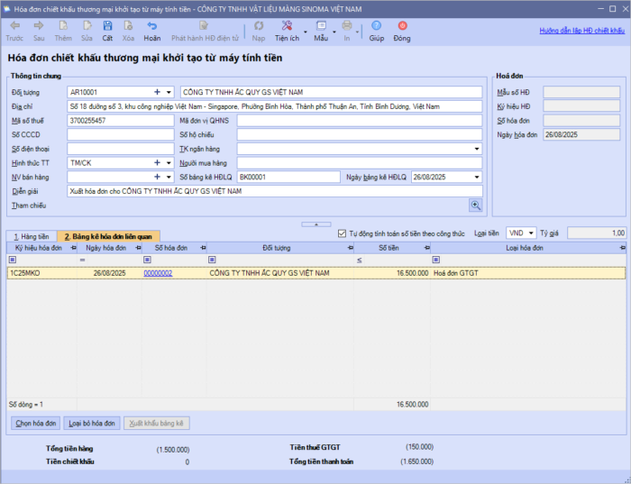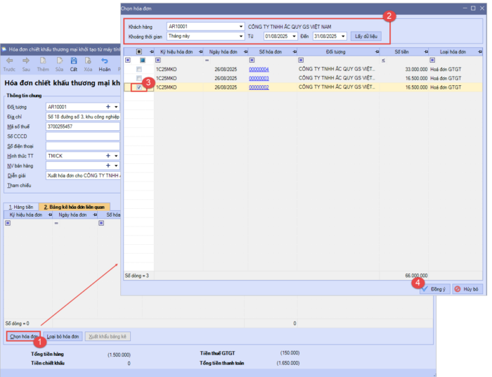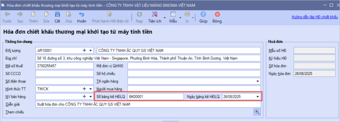 Bước 3: Khai báo các thông tin của hóa đơn chiết khấu.