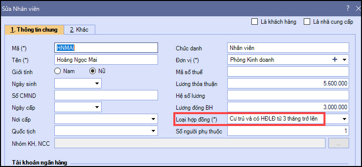 2.2. Cá nhân có 2 người con, 1 người được khấu trừ 1 năm, 1 người không đủ điều kiện để khấu trừ 1 năm - tích vào ủy quyền thì mặc định 2 bé nhân cả 12 tháng .Như vậy là đúng hay sai so với quy định, nếu gõ tay lại thì có sai không?Thời gian được tính giảm trừ của người phụ thuộc tùy thuộc vào thời điểm bắt đầu và kết thúc giảm trừ. Thời điểm bắt đầu và kết thúc giảm trừ được khai báo trên danh mục nhân viên. Ví dụ: Có 2 người con: Con 1 sinh tháng 05/2017, con 2 sinh tháng 03/2020 => Khai báo người phụ thuộc cho nhân viên này trên danh mục như sau: – Con 1: Bắt đầu 05/2017, Kết thúc bỏ trống do vẫn đang nuôi dưỡng – Con 2: Bắt đầu 03/2020, Kết thúc bỏ trống do vẫn đang nuôi dưỡng => Khi quyết toán năm 2020, con 1 được trừ 12 tháng (T1-T12), con 2 được trừ 10 tháng (T3-T12) Lưu ý : nếu nhân viên nào ủy quyền thì cần khai báo đầy đủ MST cá nhân của nhân viên đó thì phần mềm mới ngầm định đúng được. |