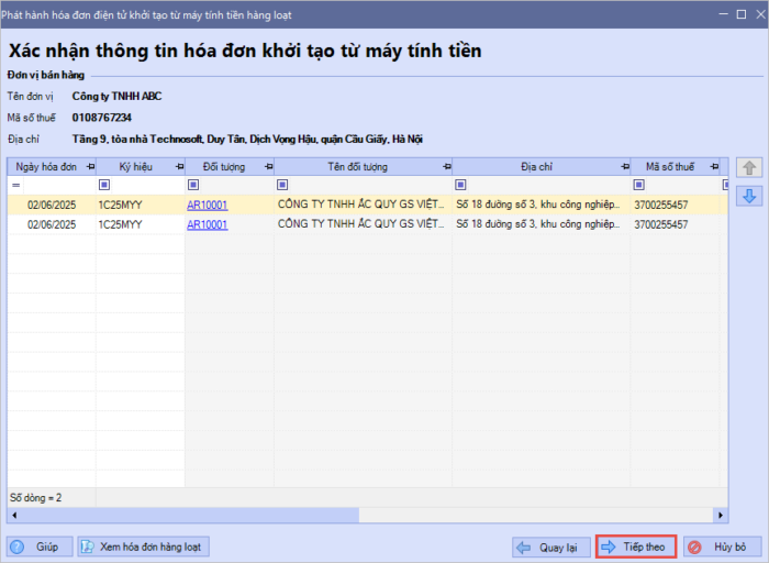 Lưu ý: Khi người dùng phát hành hàng loạt hóa đơn, nếu hóa đơn có ngày hóa đơn nhỏ hơn ngày phát hành, chương trình tự động đưa ra thông báo để người dùng chọn lựa:
