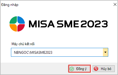 Lưu ý: Thông thường tên máy chủ có dạng Computer name\MISASME2023 (VD: NBNGOC\MISASME2023). Nếu không tìm thấy máy chủ này có thể xem hướng dẫn chọn máy chủ SQL tại mục tại đây.