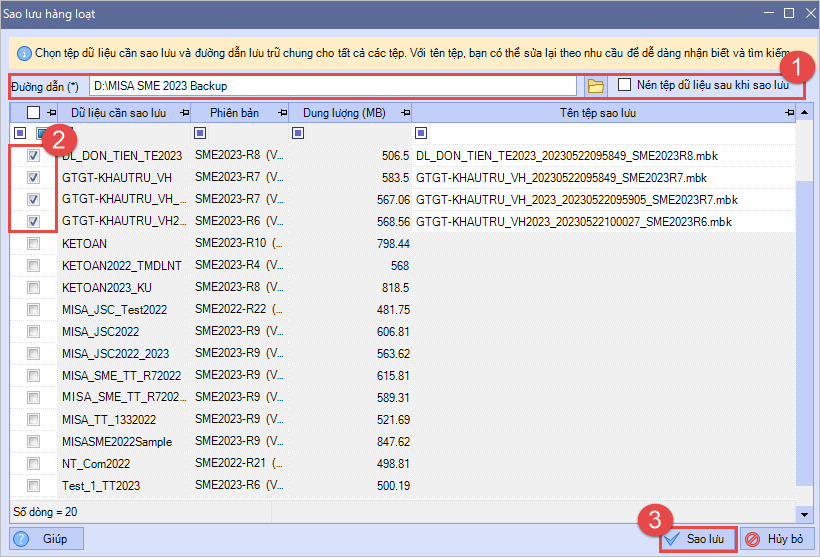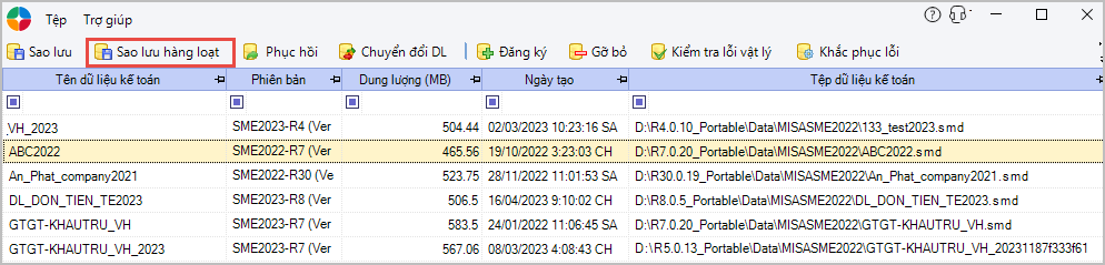 Mục đích: Bài viết hướng dẫn cách sao lưu hàng loạt dữ liệu kế toán từ phiên bản SME 2023 R10, giúp doanh nghiệp bảo vệ và phục hồi nhiều dữ liệu cùng lúc khi gặp sự cố mất, lỗi, xóa hoặc sai sót, đảm bảo an toàn và liên tục cho hoạt động kế toán.