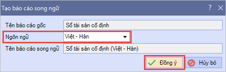 Bước 2: Chọn 1 trong 3 ngôn ngữ báo cáo: Việt – Anh hoặc Việt – Trung hoặc Việt – Hàn tùy theo nhu cầu sử dụng\Nhấn Đồng ý