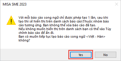 - Mỗi báo cáo gốc chỉ được tạo 1 báo cáo song ngữ tương ứng với từng loại ngôn ngữ.