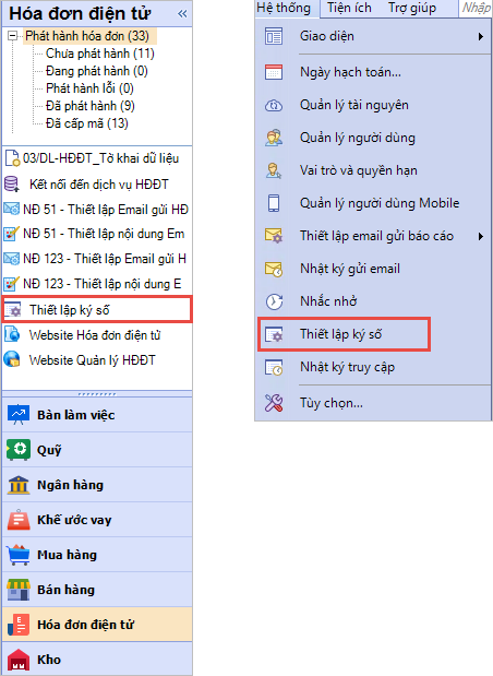 Phải thực hiện thiết lập ký số cho từng Dữ liệu kế toán, từng máy tính và từng chi nhánh độc lập.