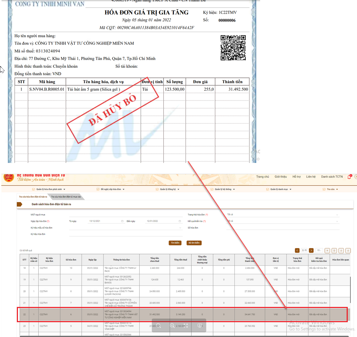 Đã lập hủy hóa đơn nhưng khi tra cứu trên trang https://hoadondientu.gdt.gov.vn/ vẫn để trạng thái là Hoá đơn mới, không cập nhật trạng thái là Hóa đơn đã bị hủy