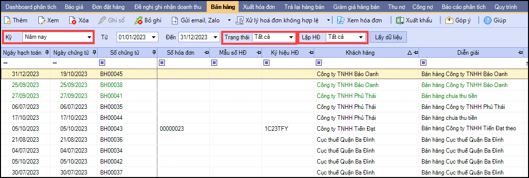 Nguyên nhân 1: Chứng từ không thuộc điều kiện lọc của danh sách chứng từ/hóa đơn đang xem