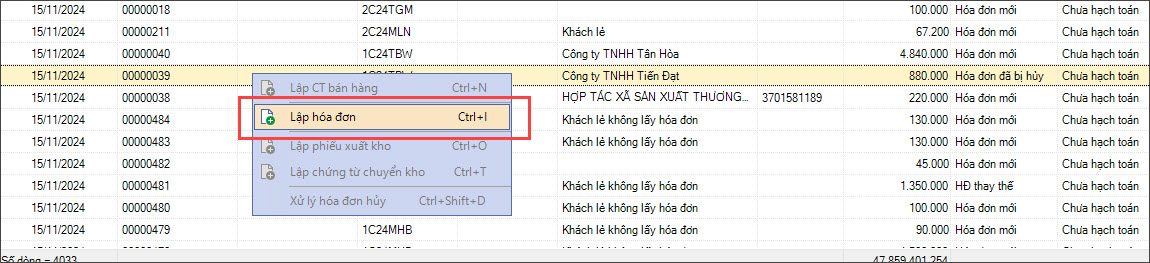 - Nhận biết hiện tượng không hiển thị hóa đơn đã hủy khi lập hóa đơn thay thế