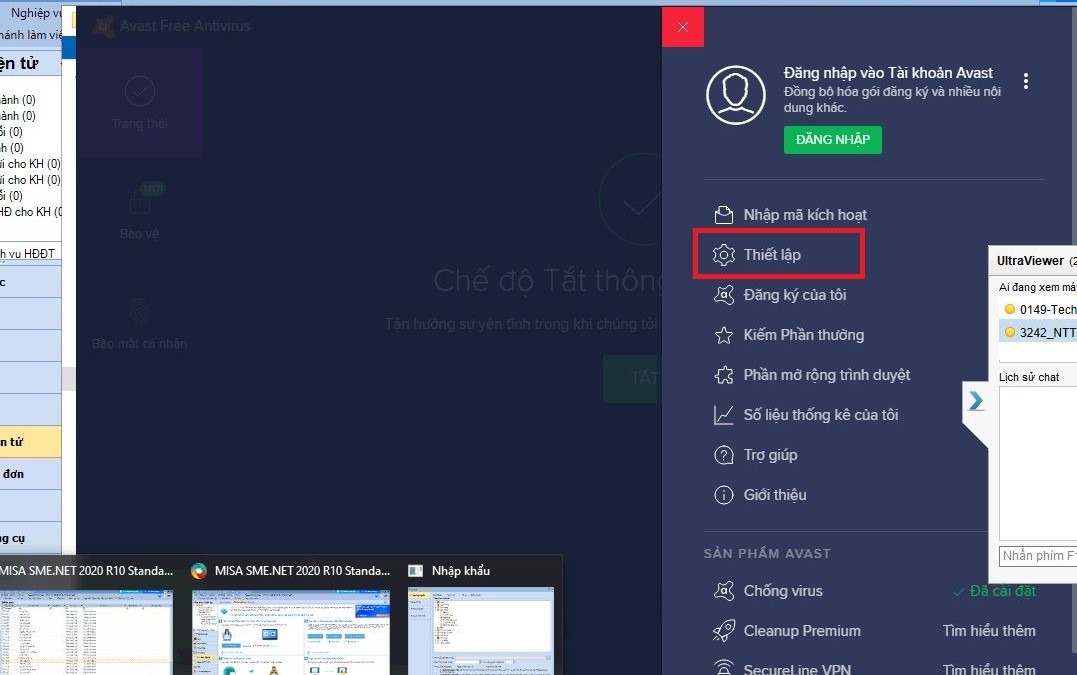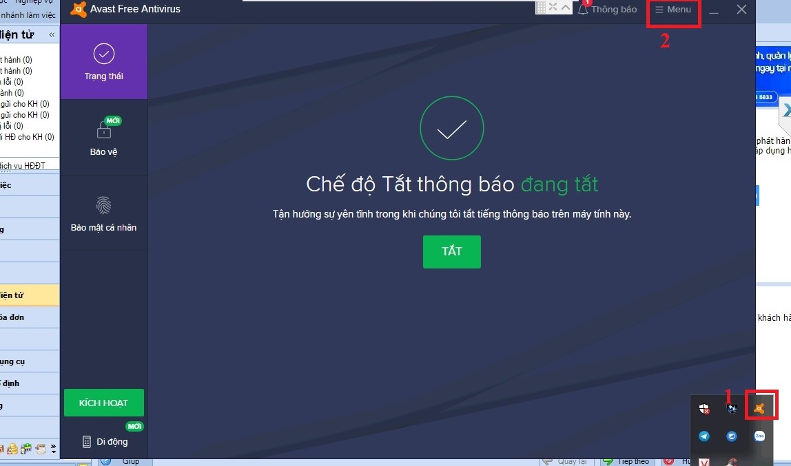 2.1. Trên máy tính đang cài phần mềm diệt virus AVAST