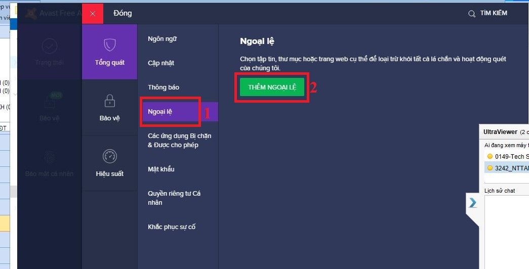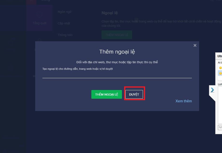 Bước 3: Nhấn chọn Ngoại lệ\Thêm ngoại lệ