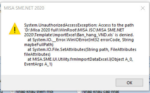 2. Tôi nhập/xuất khẩu excel trên phần mềm cảnh báo lỗi tiếng anh thì làm thế nào?