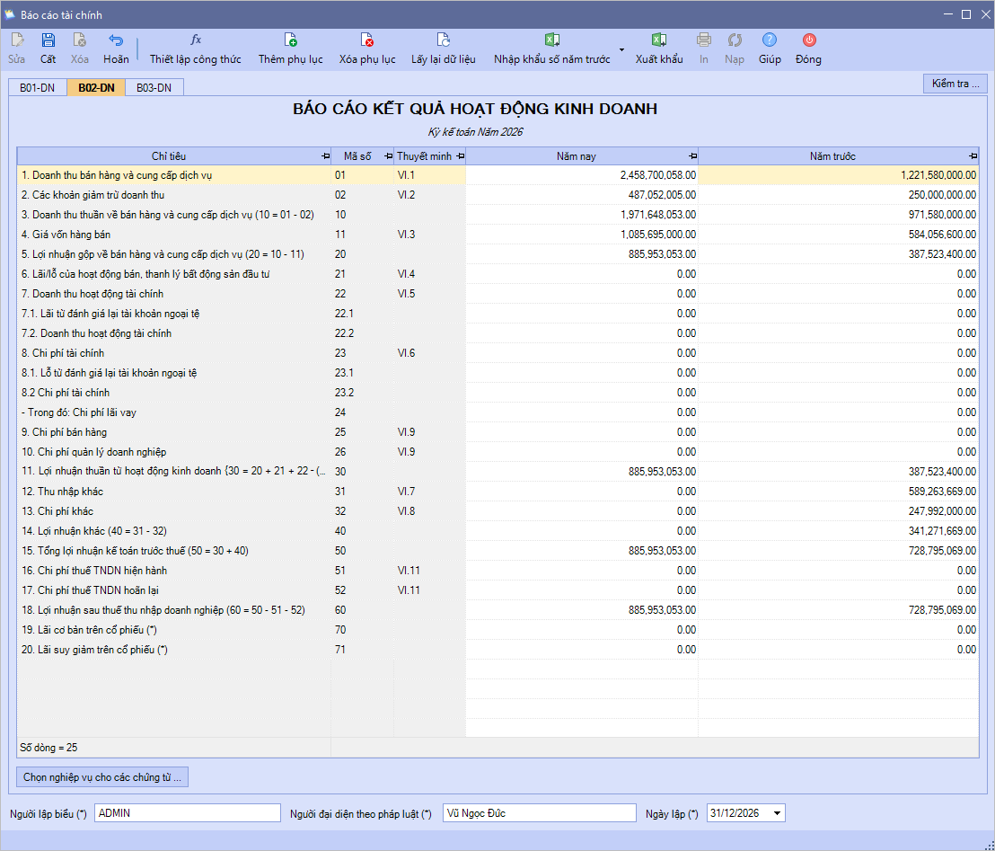 • Tab B02-DNN: Báo cáo kết quả hoạt động kinh doanh.