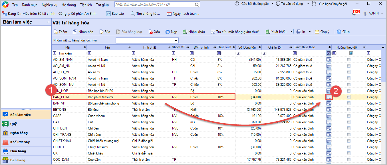 - Cách 1: Tra cứu trực tiếp trên danh sách vật tư hàng hóa