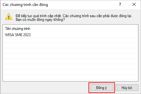 Bước 7: Nhấn Đồng ý để đóng các chương trình liên quan khi cài đặt. Chương trình sẽ tự động cài đặt nâng cấp phần mềm lên phiên bản mới.