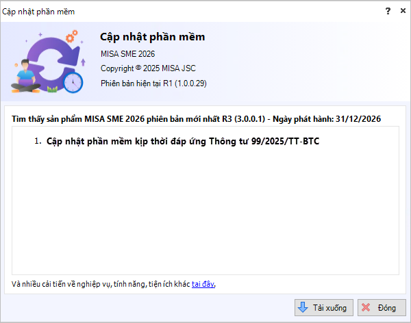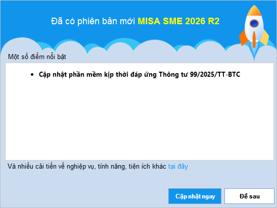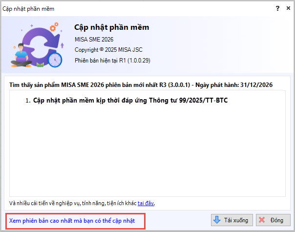 Bước 3: Sau khi kiểm tra, chương trình hiển thị thông tin về phiên bản mới nhất của phần mềm MISA SME.