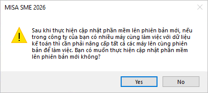 3.3. Sau khi cập nhật lên phiên bản mới, nếu trong công ty có nhiều máy tính cùng làm việc với một dữ liệu kế toán, cần nâng cấp tất cả các máy lên cùng phiên bản để làm việc.