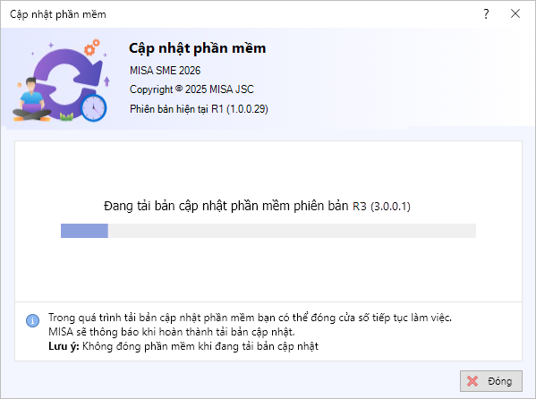 Lưu ý: Trong quá trình tải bản cập nhật, có thể đóng cửa sổ cập nhật phần mềm để tiếp tục làm việc bình thường (không được đóng phần mềm).