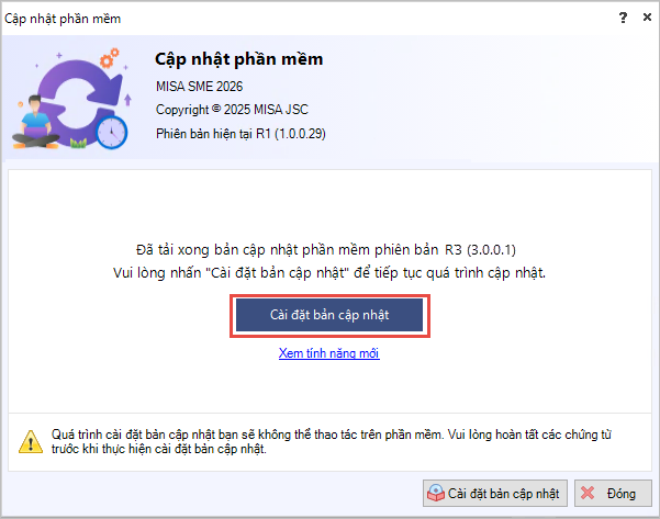 Bước 5: Nếu đang nhập dở các chứng từ, cần hoàn thiện chứng từ trước khi cài đặt bản cập nhật vì không thể thao tác trên phần mềm trong quá trình cài đặt.