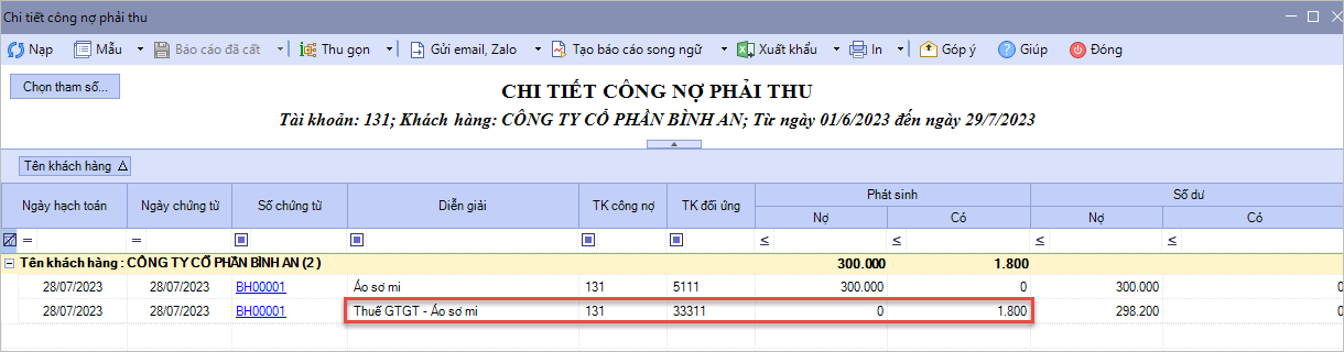 Bước 3: Nhấn Cất. Bước 4: Đồng thời, phần mềm tự động hạch toán số thuế được giảm vào số tiền phải thu của khách hàng (Nợ 3331/Có 131, 111,112,…)